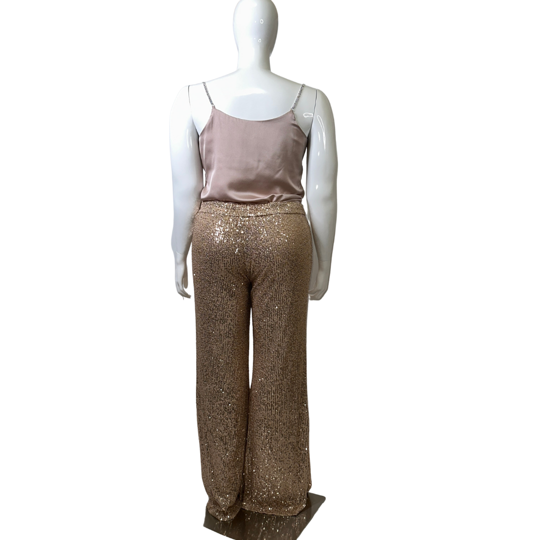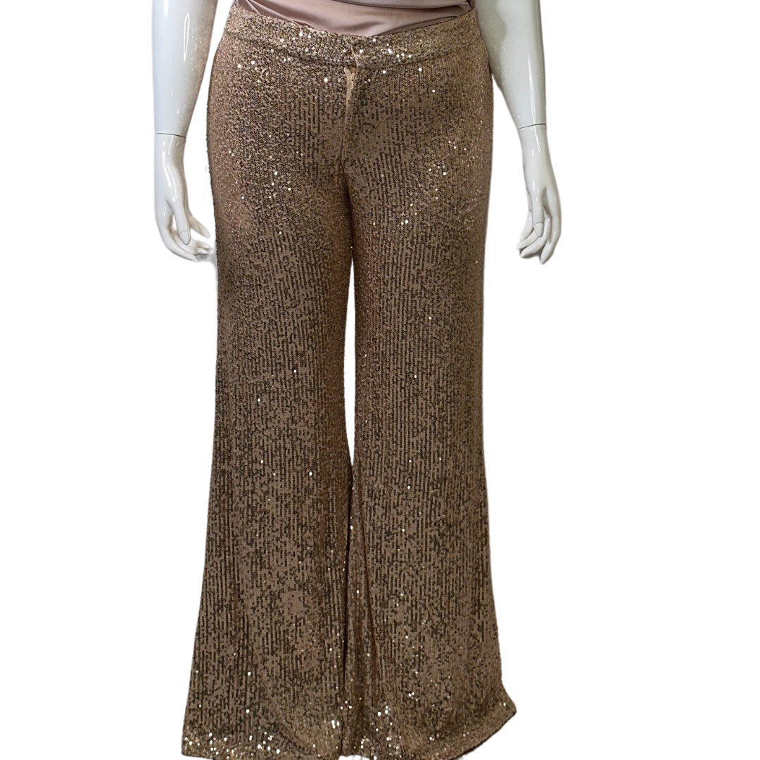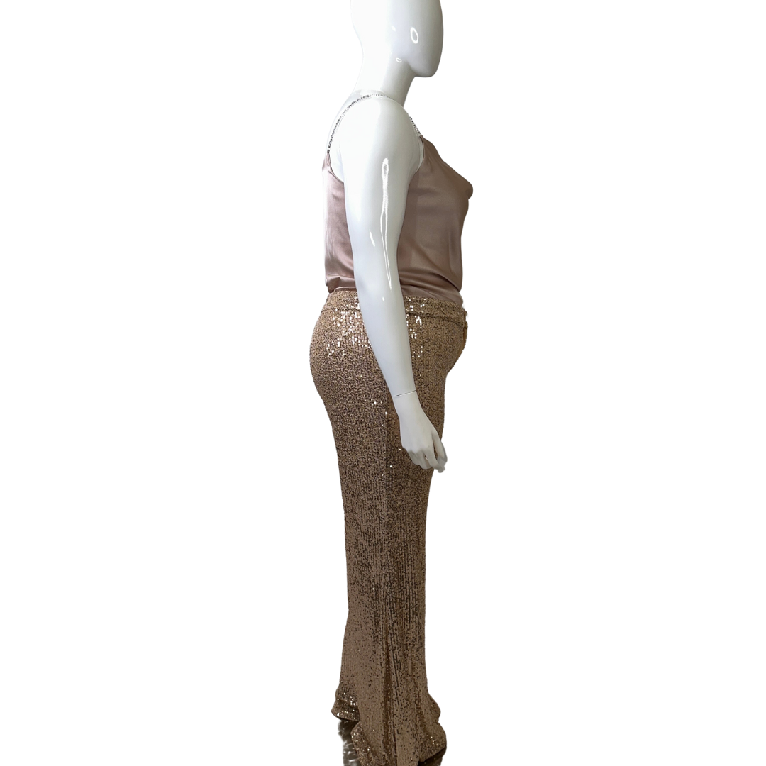 Rose Gold Sequins Flare Pants. Lined.